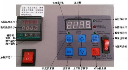 記憶功能:在開關(guān)關(guān)閉前,自動存儲所設(shè)值的切斷長度和切斷數(shù)量以及切斷速度。
